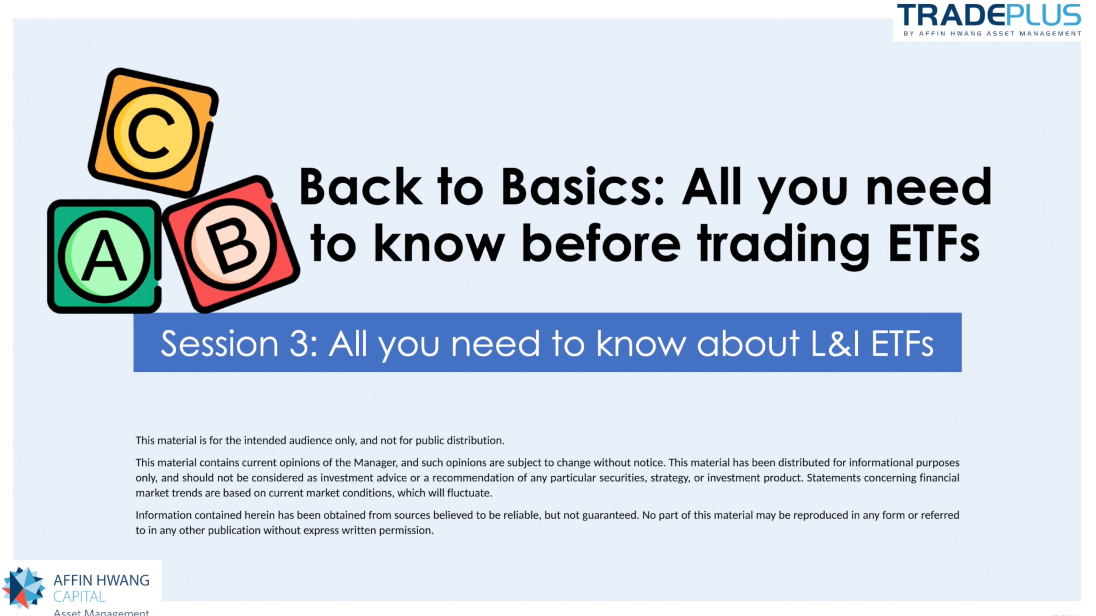 In our third Back to Basics session, we delve into the world of Leveraged and Inverse (“L&I”) ETFs. A step above regular ETFs, L&I ETFs provide traders / investors short to medium term opportunity to take advantage of volatility of an index. Watch the webinar replay to learn all about them, how they work and how to invest into L&I products in Malaysia.